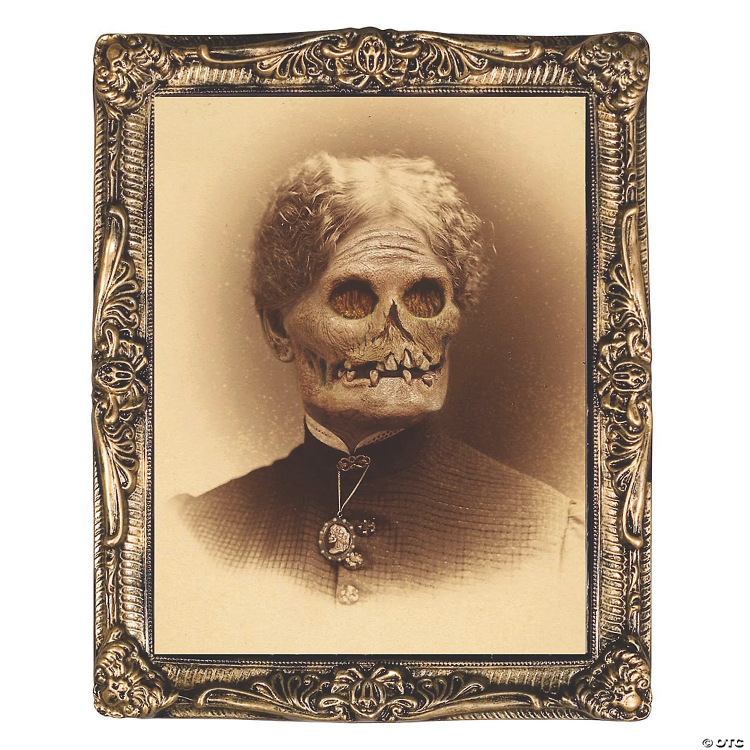 This portrait is a must have for your next Halloween party or haunt. Aunt Hazel is a holographic portrait of a sweet loving grandmother that changes faces into a rotted corpse as you walk by. Portrait measures 17 inches x 21 inches with a molded plastic frame. You won’t believe your eyes.