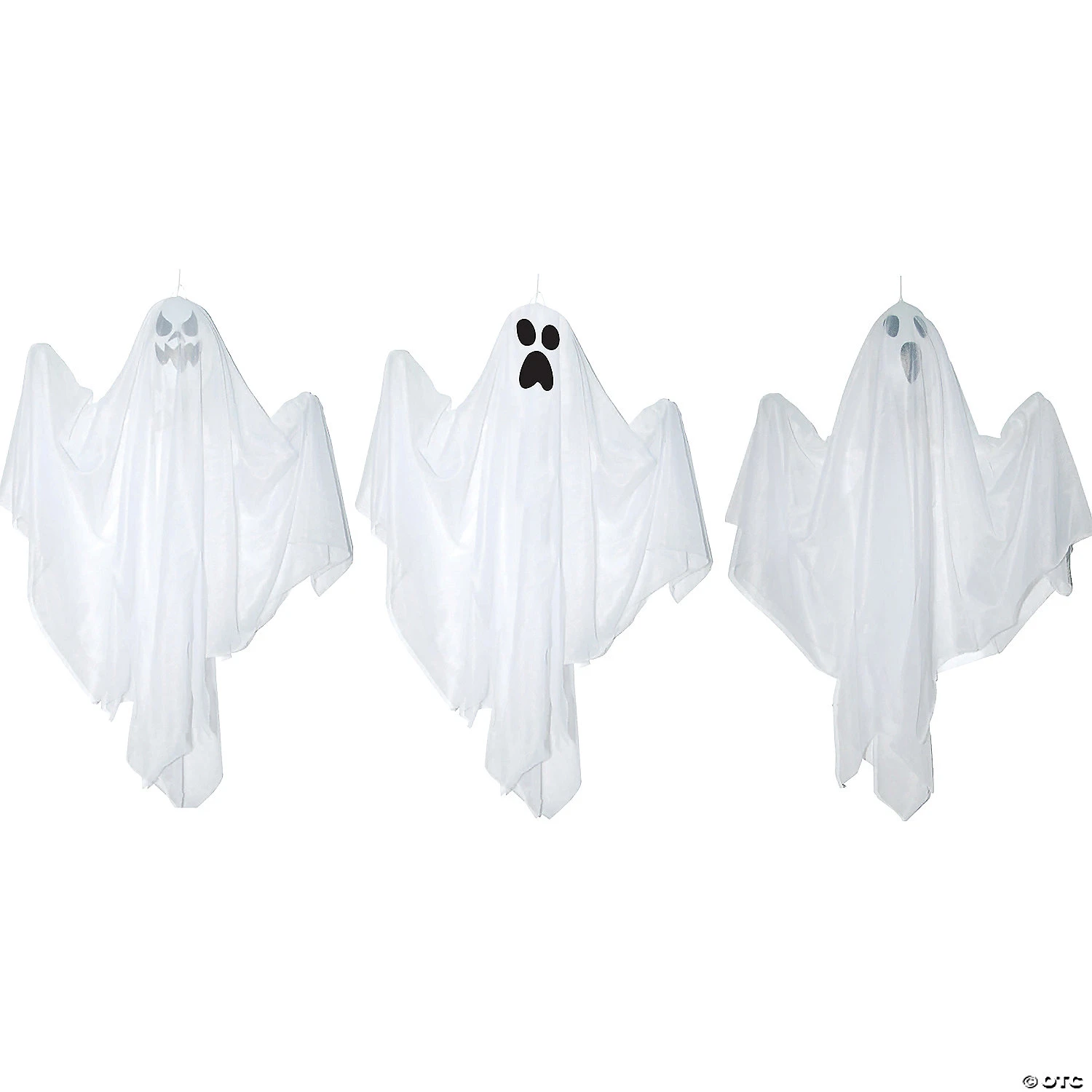 Cute 18 inch Hanging Ghost with assorted face designs for fun! Hanging string allows you to place them anywhere! Posable arms create many looks, made of lightweight metal armature covered by foam. A foam ball under the drape gives a proper head shape. Assorted face looks.Measures 18 inches tall x 15 inches wide x 2 inches deep.