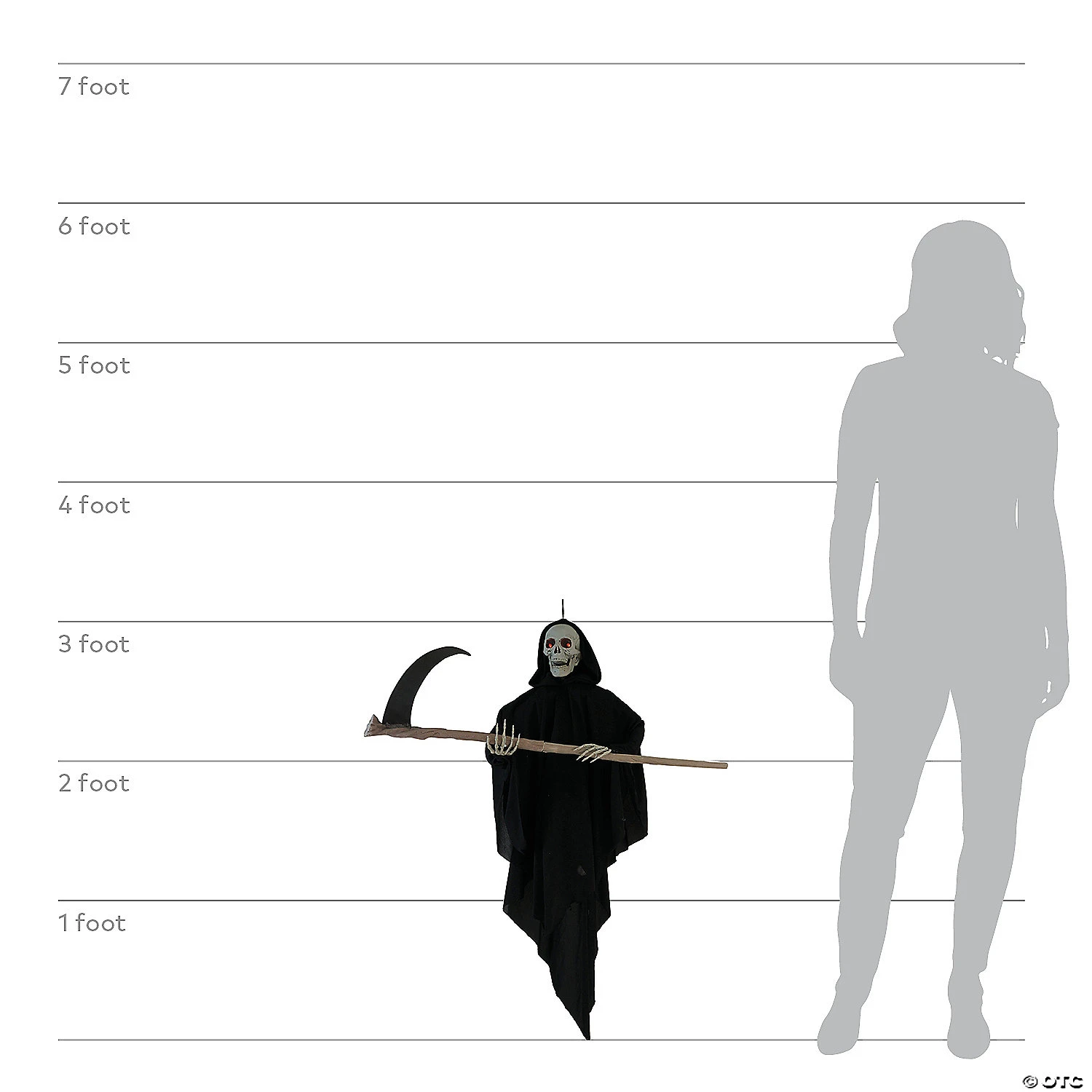 This three-foot-tall reaper is big enough to pack a punch and small enough to fit in a wide range of spaces such as porches, apartment windows, and front yard bushes. Running on batteries, this Reaper has glowing eyes and an eerie voice that’s sure to freak out anyone who passes by. The skull has a loop at the top of the head, making it a breeze to display anywhere you want to spread a little gloom and doom!
