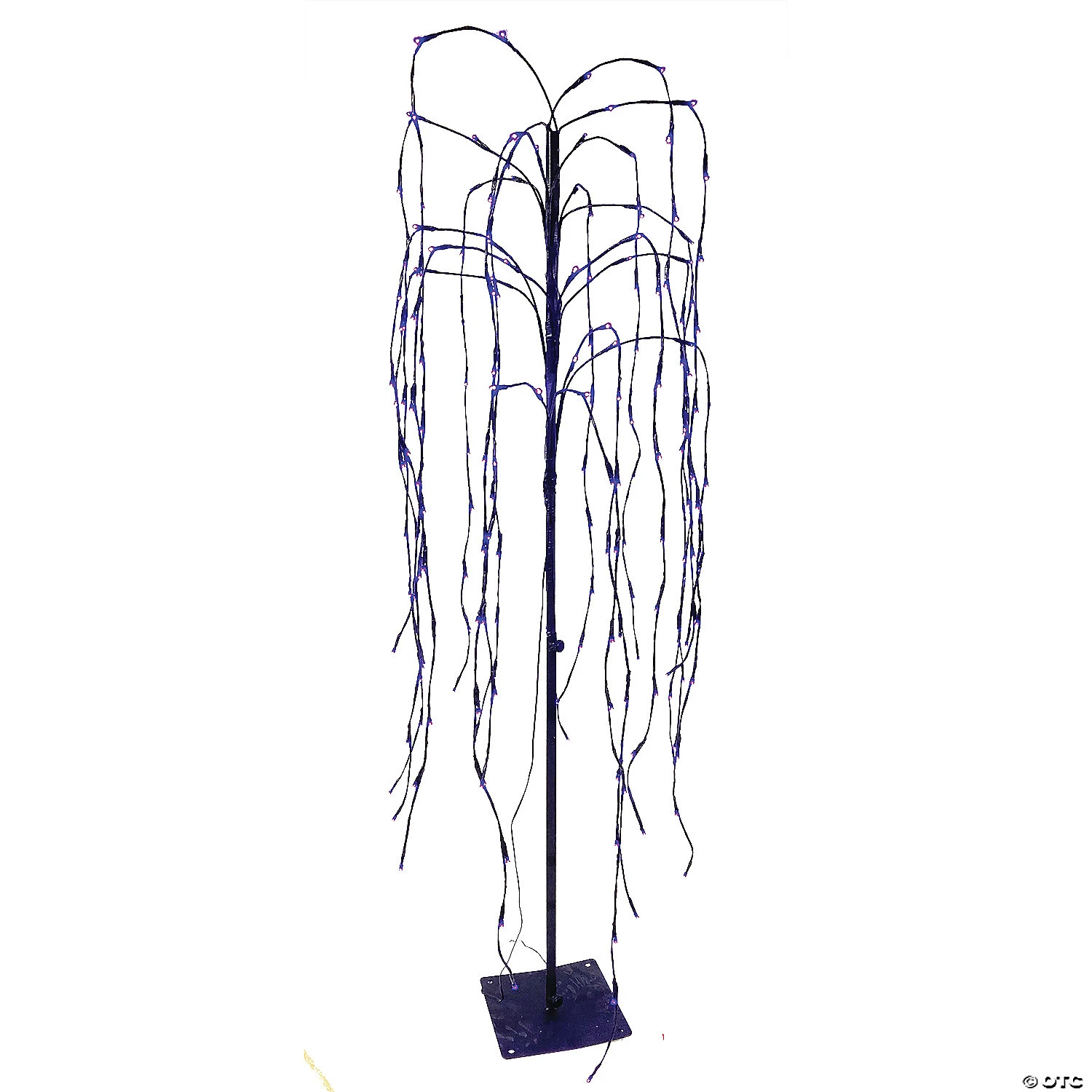 Create an eerie atmosphere with this 5 foot Weeping Willow tree with purple LED lights that cascading from all 20 branches. Easy to display indoors.
