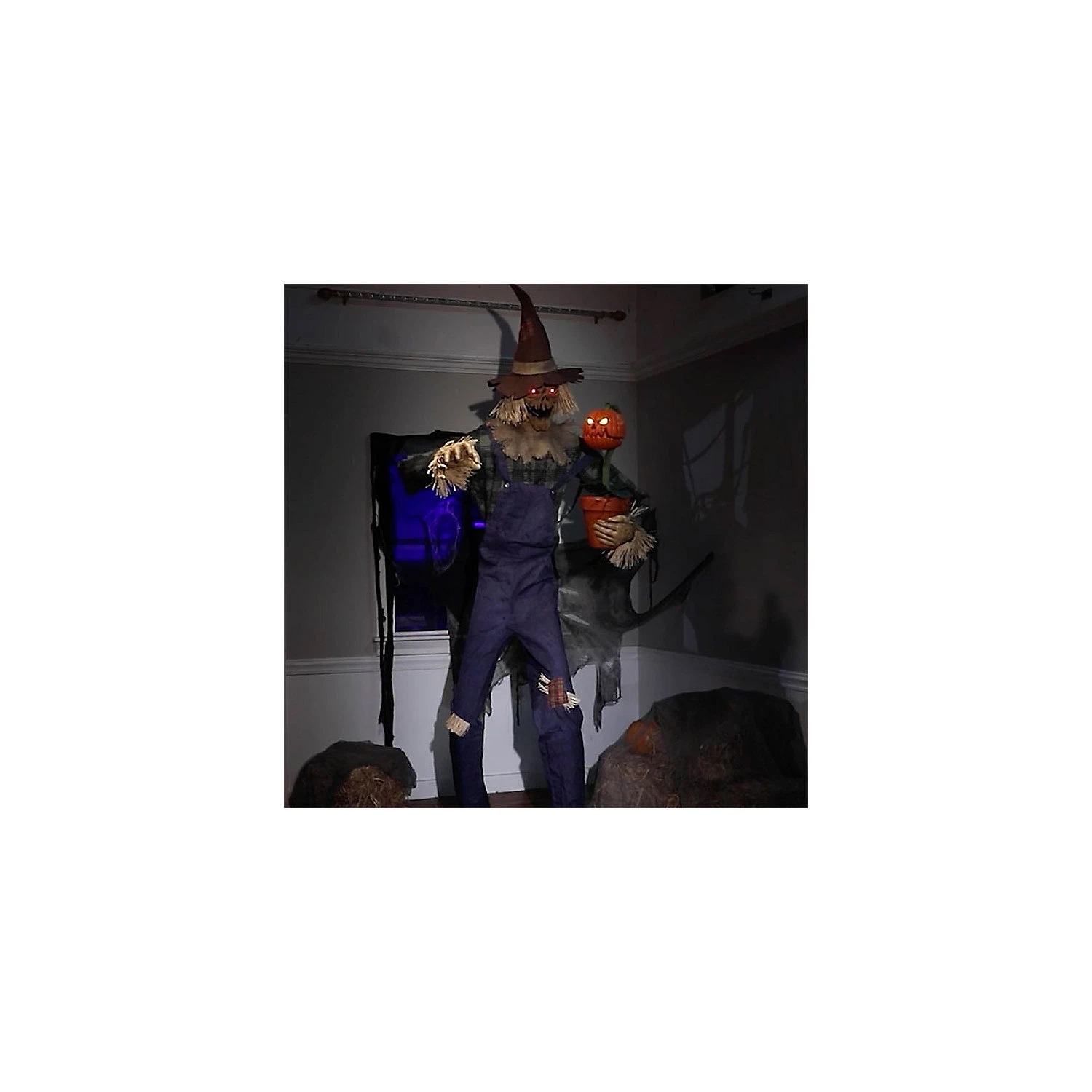 Watch out, don’t get too close! This 7-foot Rotten Harvester shows off his “hungry” crops this season! You can look but don’t touch or this Rotten Harvester just might feed you to his little pet. The Scarecrow’s torso moves side to side and his little crop’s jaw moves up and down. Both have light-up eyes and are the perfect Halloween fright to greet your neighbors this year. Packaging: Box with Color Label