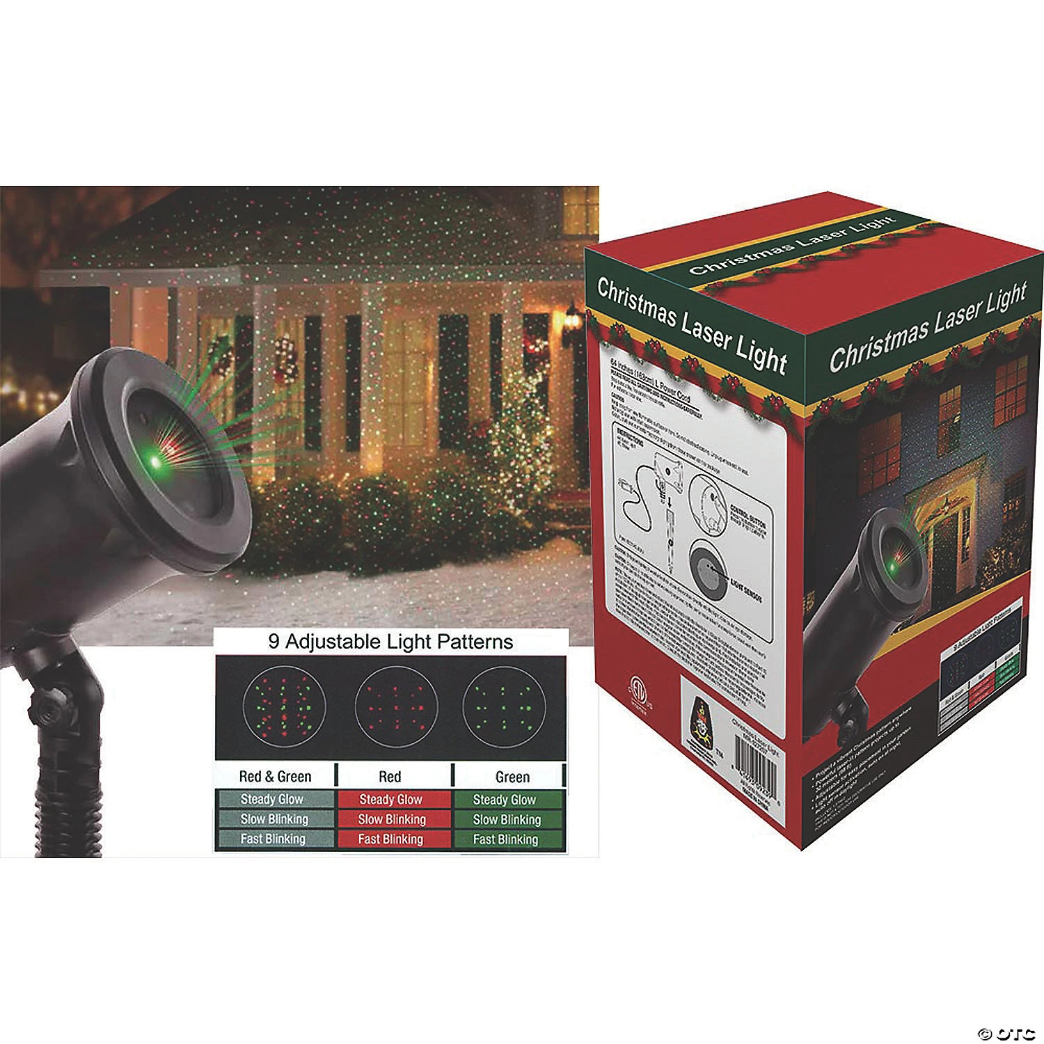 Decorate your house and landscape with the Christmas Laser Light Projector everyone is talking about! Simply plug in the included UL Power adapter into any standard outlet and watch everything be covered in dazzling lights! Nine Adjustable Light Patterns: Red/Green Red and Green each in steady glow slow blinking, fast blinking. Use the included ground stake to easily set up and display anywhere in your yard. Includes laser light with 64 inch power cord, and one stake. Control button and light sensor located on back of laser light. Project a vibrant Christmas pattern anywhere, powerful laser-lit pattern projects up to 98 feet, adjustable for easy placements in your garden, light sensor activation, auto on at night, and auto off in daylight. Laser light swivels when attached to ground stake. Input – AC 120v 60Hz 10W. Indoor/Outdoor use. This is not a toy; for decorative use only. Only point lighting toward a fixed structure; do not look directly into the light, can cause eye damage. Measurements when attached to stake – 13.5 inche 5.5 inches x 4.5 inches. Plastic.