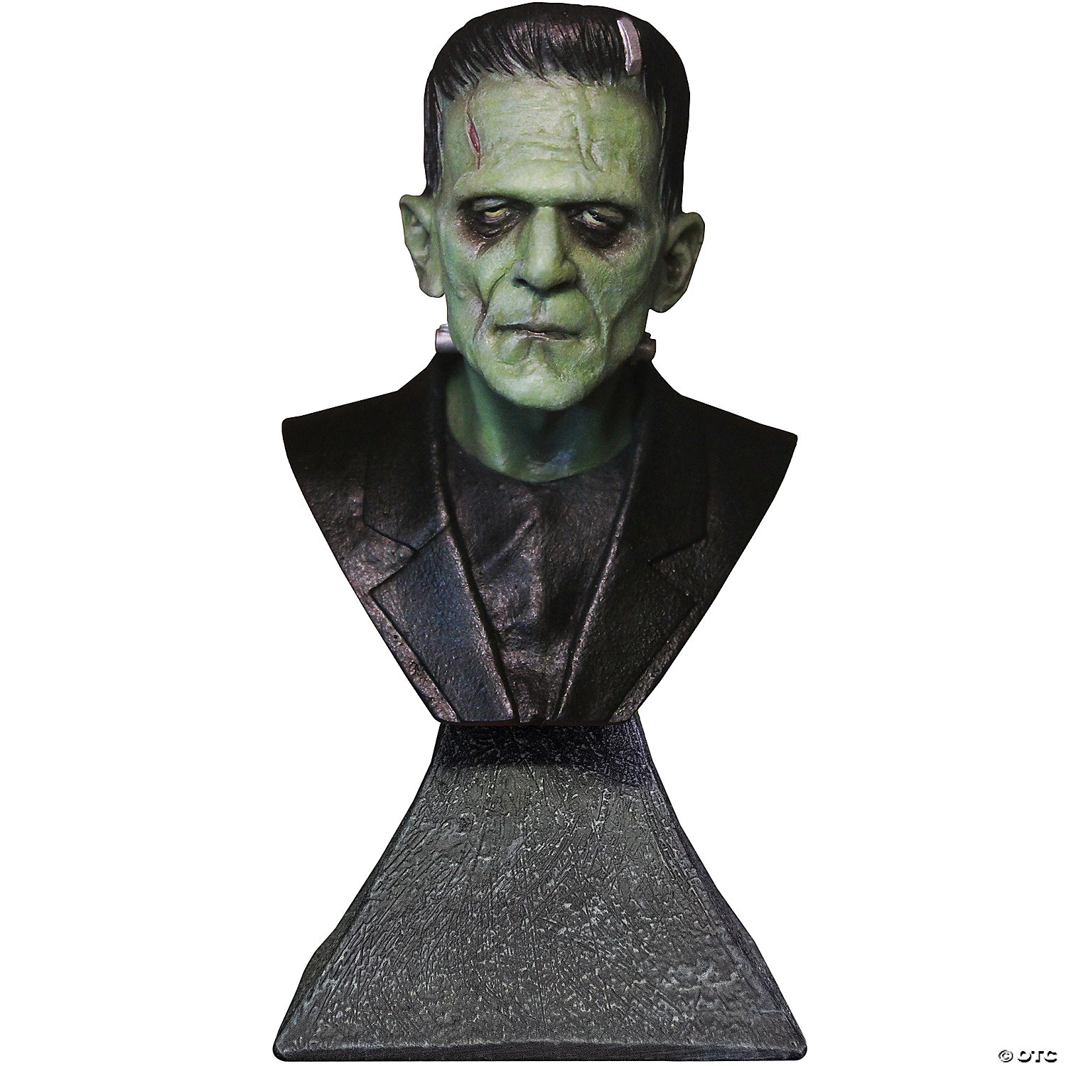 The Officially Licensed Universal Monsters Frankenstein Bust features an immaculately painted sculpture detailed to perfection. Each Bust is enclosed in a graphic display box with clear vinyl window to highlight its unique and stunning design. The Mini Bust stands approximately 5-6 inches tall including an attached base that makes for easy placement around your home or office. This highly collectible beauty is sure to turn heads wherever you place it and is durable enough to enjoy for years.