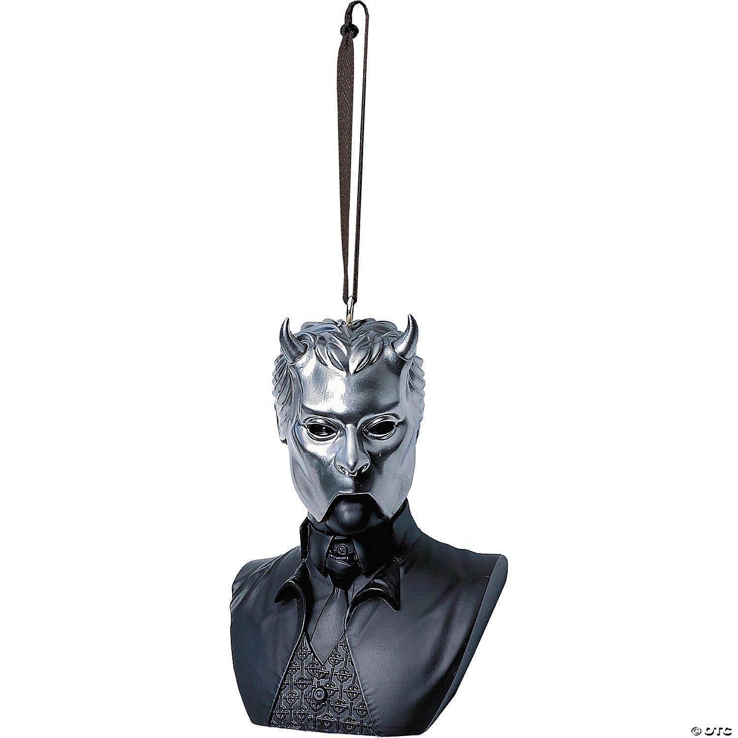 The Officially Licensed Holiday Horrors Nameless Ghoul ornament from the iconic heavy metal band Ghost. Each immaculately painted resin ornament is detailed to perfection. The piece is featured in a graphic display box with clear vinyl window to highlight its unique and detailed design. Included is an attached ribbon so you can hang the bust in a variety of settings ranging from your Car to your Home or Office. Make an impact with an iconic instantly recognizable character painted to perfection and durable enough to enjoy for years!Ghost! © 2021 Global Merchandising Services. All right reserved.