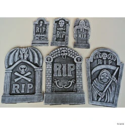 Amusing and easy to set up. Set includes 1 tombstone, 1 skull, and a pair of hands. Simply push the sturdy glow-in-the-dark plastic pieces into your lawn with the attached spikes and enjoy. 22 in x 11 1/2 in x 1/8 in