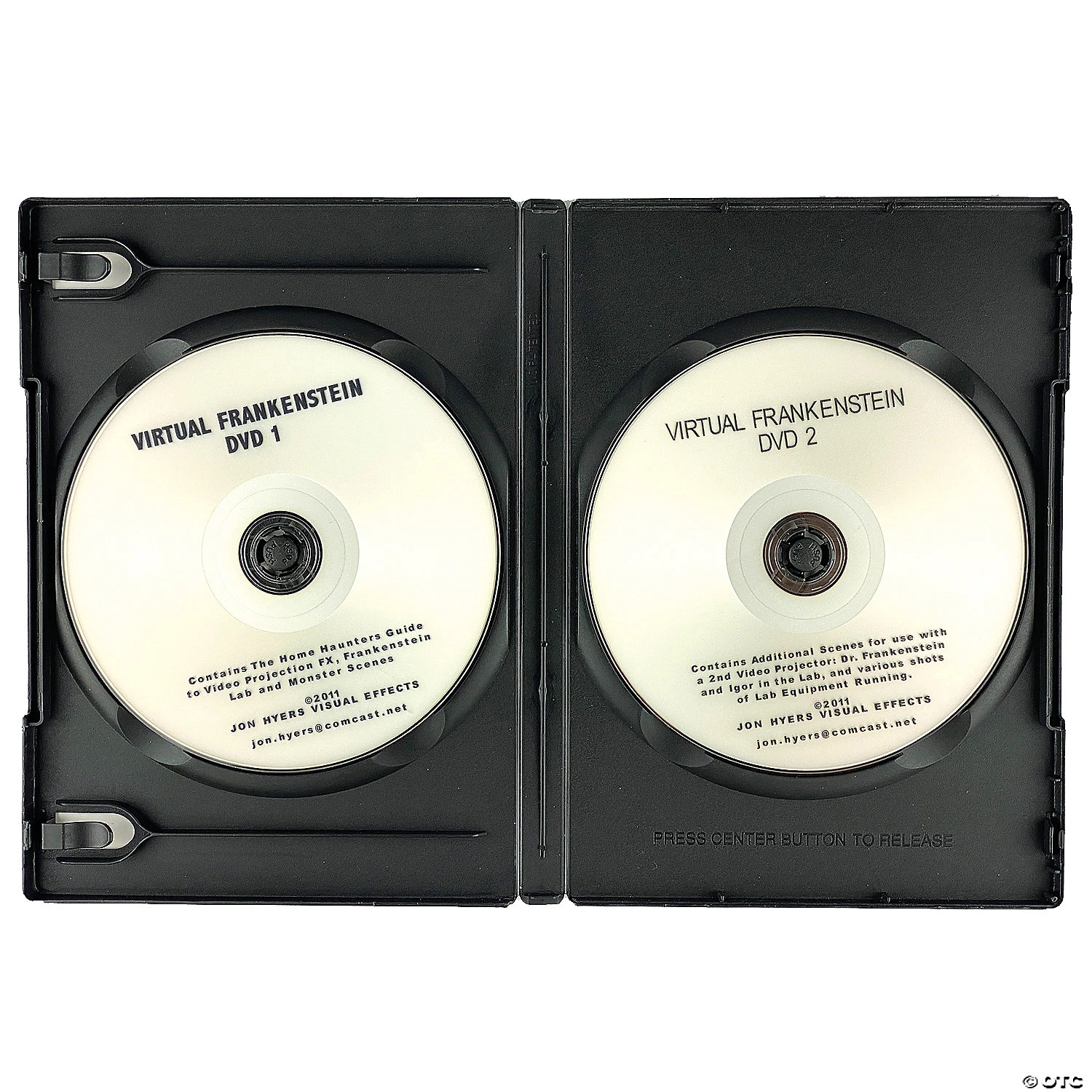 Jon Hyers DVD Projection Frankenstein DVD Set. Two DVDs for Video Projection Effects on Windows/Rear Screen and Walls. DVD 1 contains different chapters with Frankenstein coming to life, looking out a 4-Pane Glass Window, seeing his reflection in mirror, walking against a stone wall, and Waking Up to escape the lab. DVD 1 also includes The Home Haunters Guide to Video Projection FX DVD (which is also sold separately). DVD 2 contains scenes of Dr. Frankenstein and Igor working in the lab with a number of sequences, as well as close-ups of lab gear, so the user can use two video projectors to double the Frankenstein Theme of the effect/decor. Users may find that a larger TV would work for putting some of the close-up effects in a window, if a 2nd projector was not available.Special Shipping Information: This item ships separately from other items in your order. This item cannot ship to a P.O. Box. This item may be subject to additional processing days.ITEM IS NOT ELIGIBLE FOR EXPEDITED SHIPPING