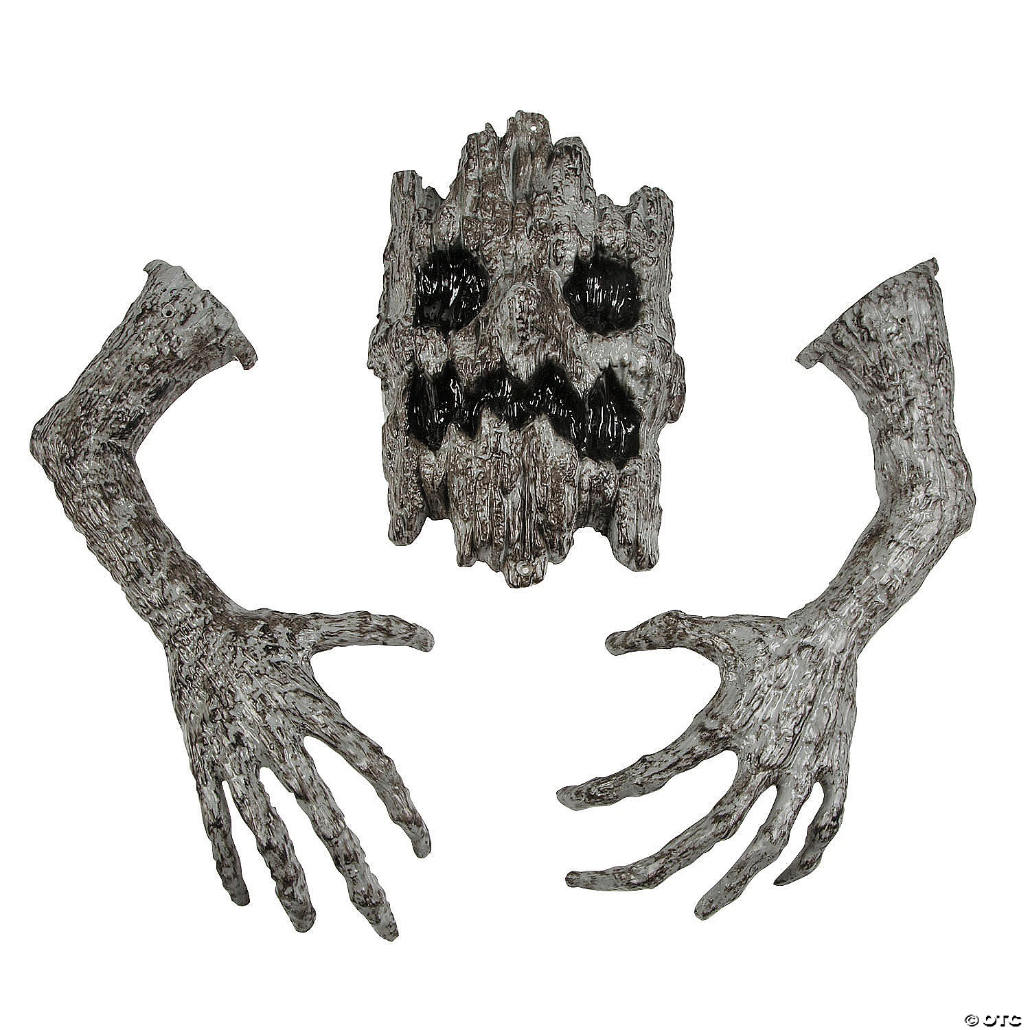 Make the tree in your yard look alive! Add this scary head and arms to give your tree a whole new character. Uses plastic picture hanger-type tabs just drive a wide headed nail into the trunk and hang them on! Great for your haunted yard scene! Head measures 11 inches tall 6 inches wide 3 inches deep. Arms measure 17 inches long with a 5.5 inch hand span.