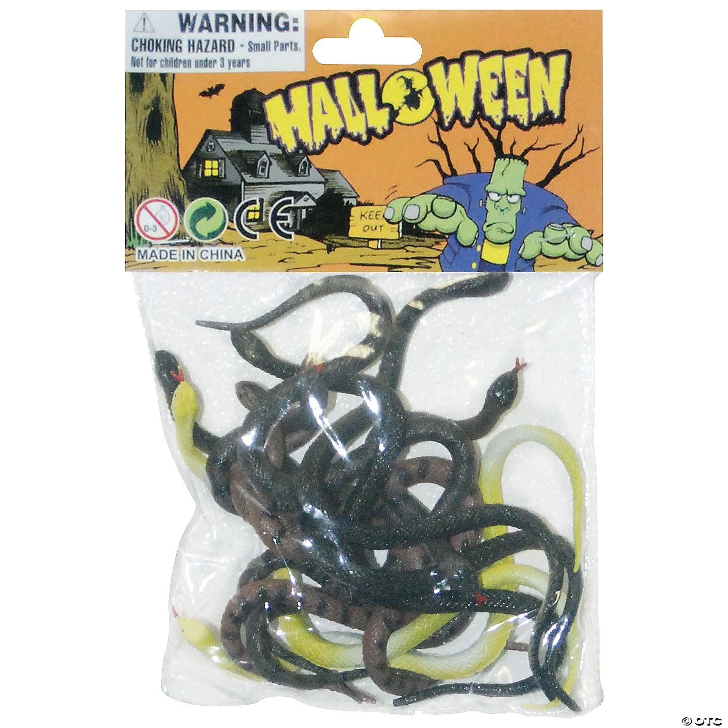 Bag Of Snakes. Great for scattering around your home haunted display, a haunted house, or just to scare your friends! Bag filled with (10 ) 5″ snakes.